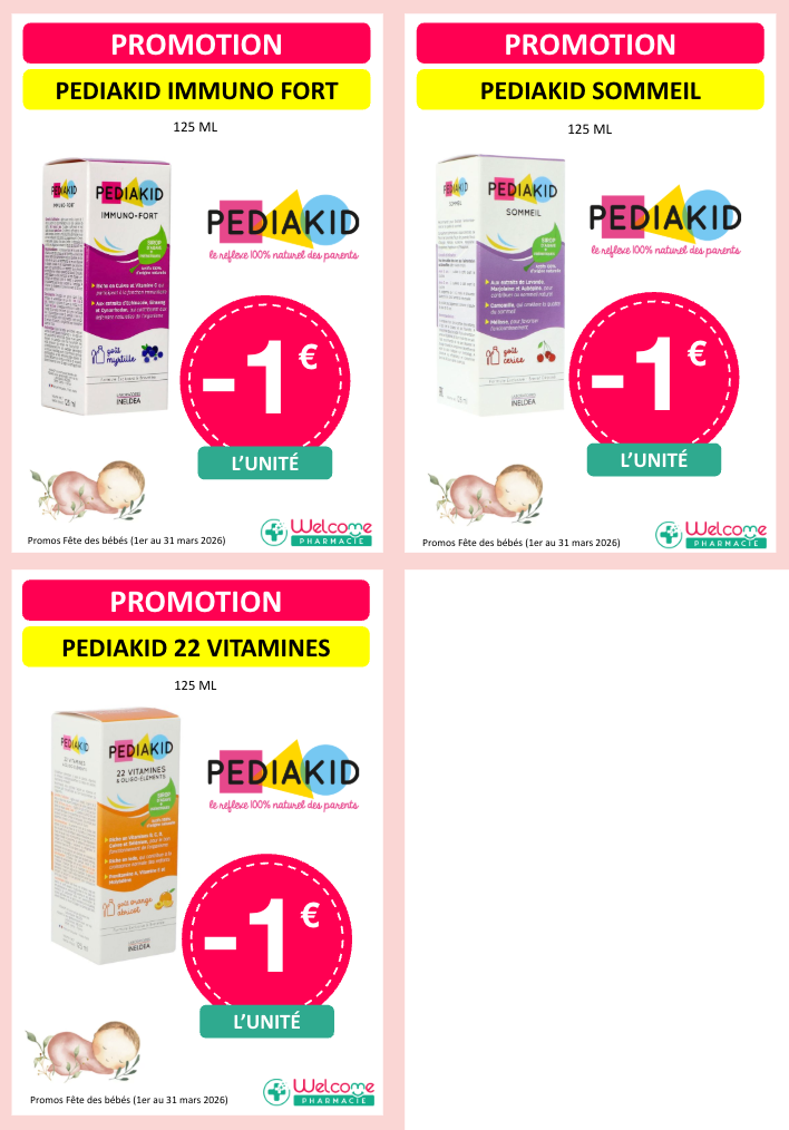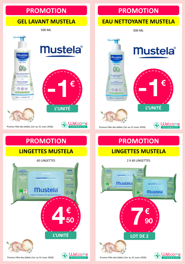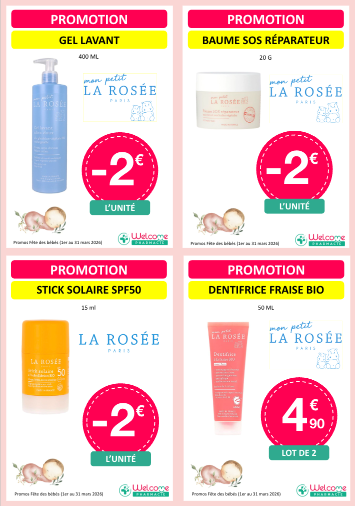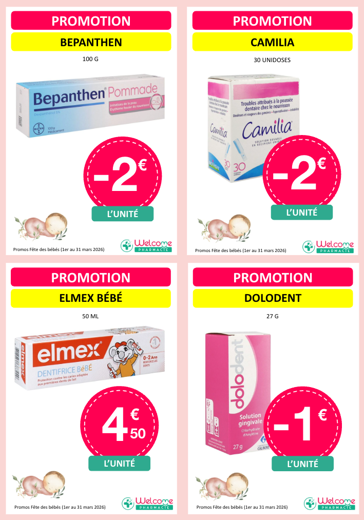 Voici les promos que nous vous proposons pour la fête des bébés dans les pharmacies participantes :